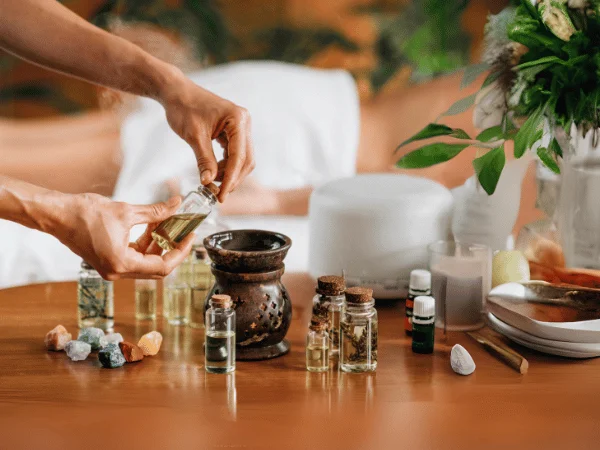 Utilizamos óleos vegetais orgânicos aquecidos e medicados com ervas específicas para o seu tratamento, potencializados com sinergias de óleos essênciais.
